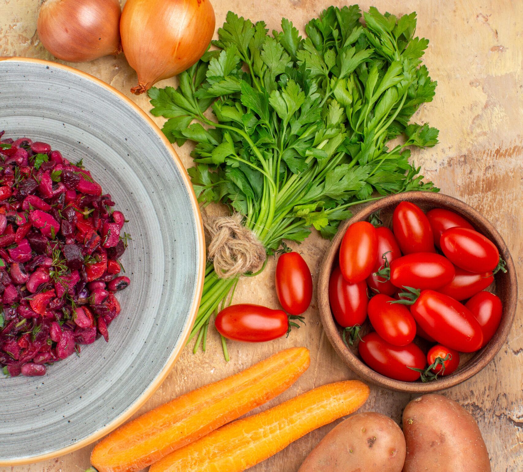 - Vegetales coloridos con un poco de grasa saludable